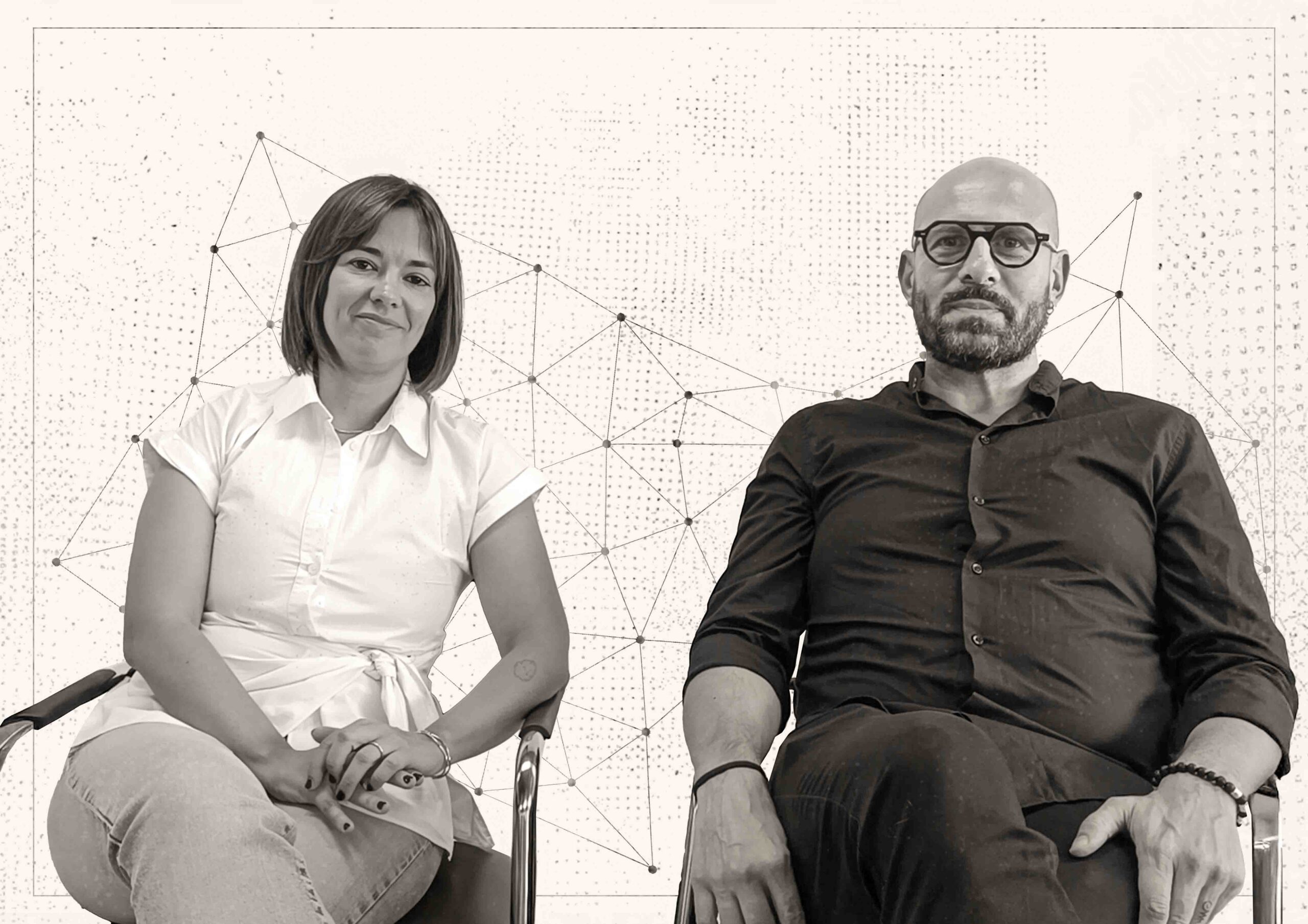 The black-and-white photographs of the protagonists become interactive thresholds: when scanned with the Bepart app, they come to life, revealing their voices, memories, and emotions.